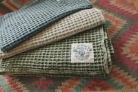 ■ワッフル織りなので、ブランケットとしてお使いいただいても保温性が高く、薄いのにとても暖かくなります。