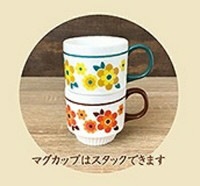 ■花輪のようにぐるりとまわった柄がレトロかわいいマグカップ。