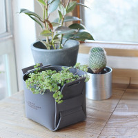 簡単に組み立てることができるPVCラバー製の鉢カバー。鉢カバーとしてはもちろん、インテリア小物や洗濯ピンチなどの小物収納としてお勧めです。