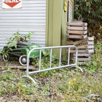 ■重厚なガルバナイズドの置き型バリケード。気になる外構にどっしりと佇むフェンス