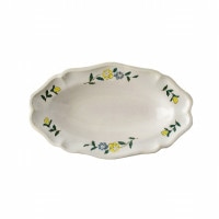 ■フランスの名窯で古くから作られているようなヴィンテージテイストを感じさせるような雰囲気の器。陶器に白化粧を施すことで柔らかさと白の濃淡が現れ、表情豊かなテクスチャーに仕上げました。一枚一枚職人が手書きをした花柄模様は形状と相まって明るい気分になるシリーズです。